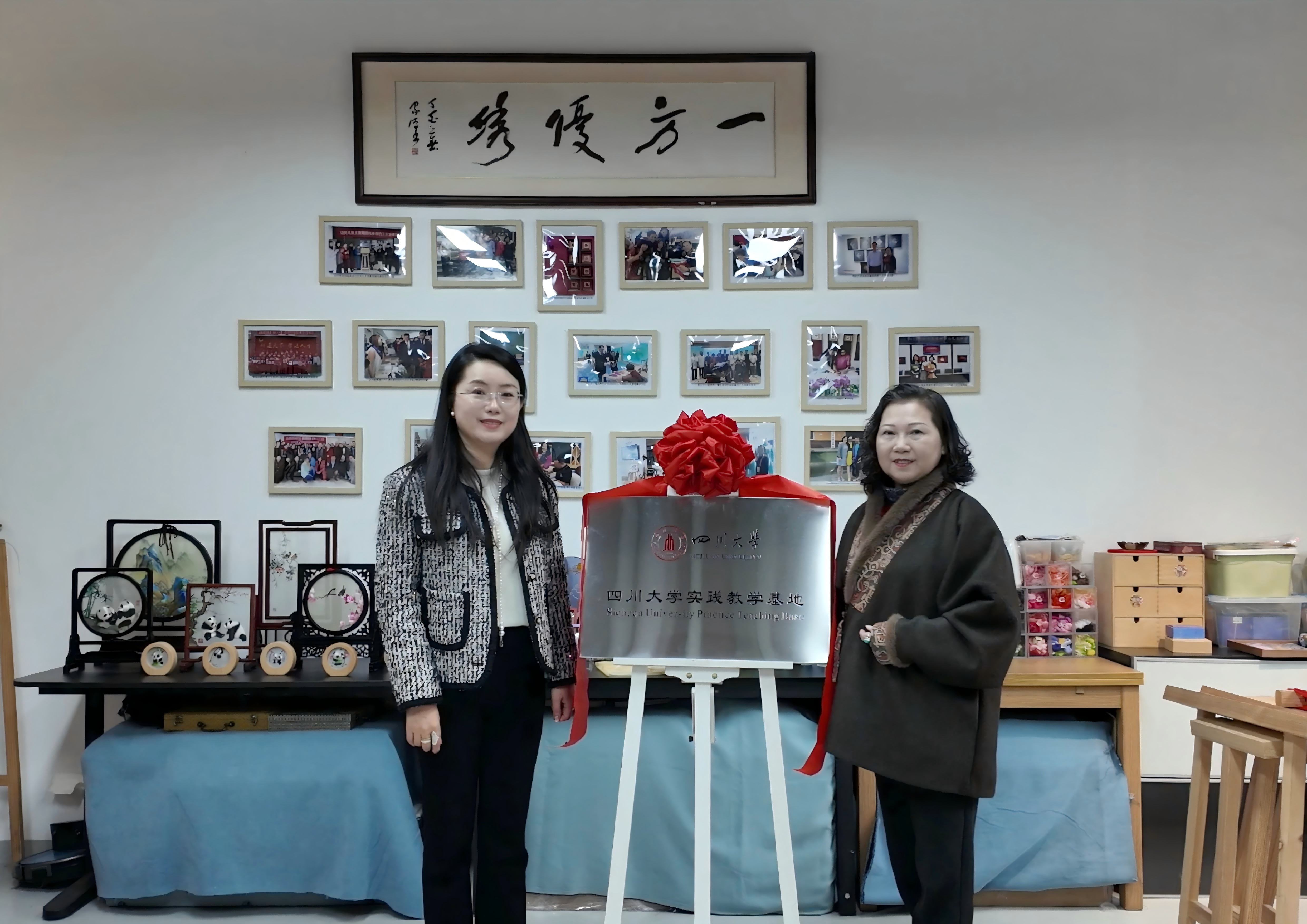 服装与服饰设计系主任杨璐铭教授与蜀绣传承人吴玉英大师进行揭牌