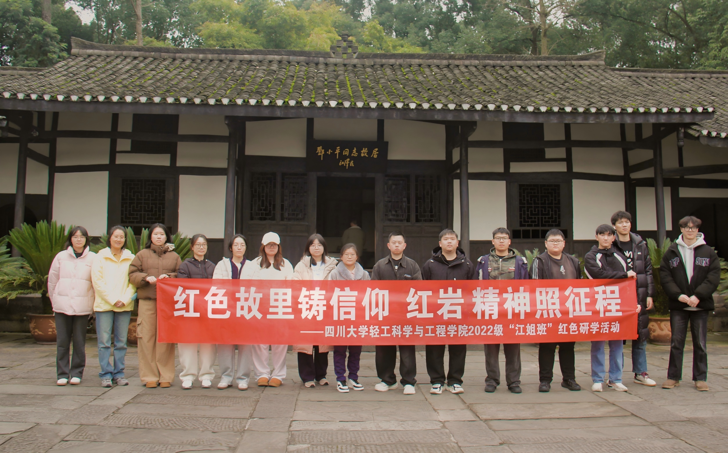 “轻思”辅导员工作室组织2022级“江姐班”赴四川广安开展红色研学实践活动,让学生在“行走的课堂”中感悟革命精神、汲取奋进力量。活动由院团委书记王舒灏带队。