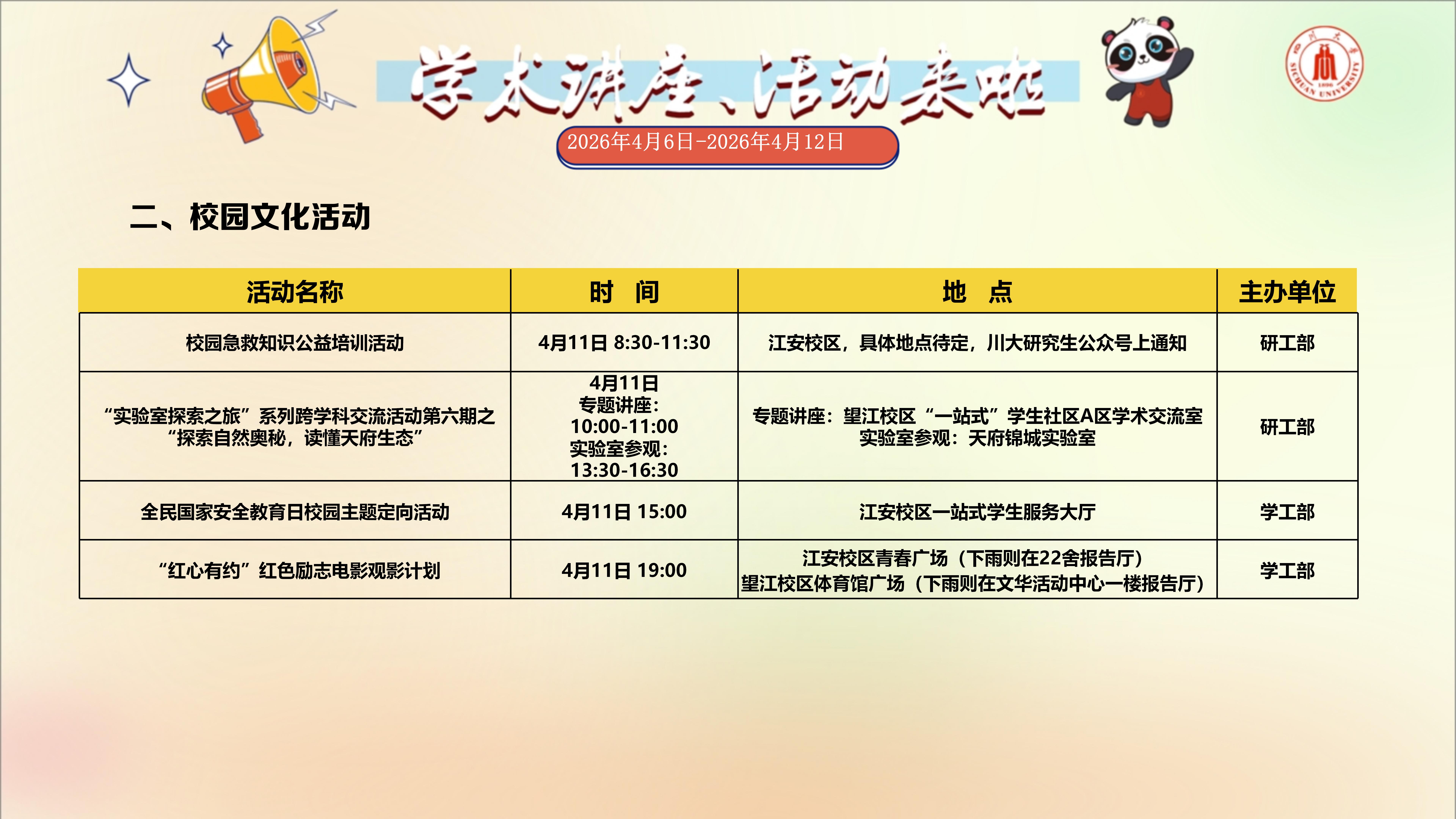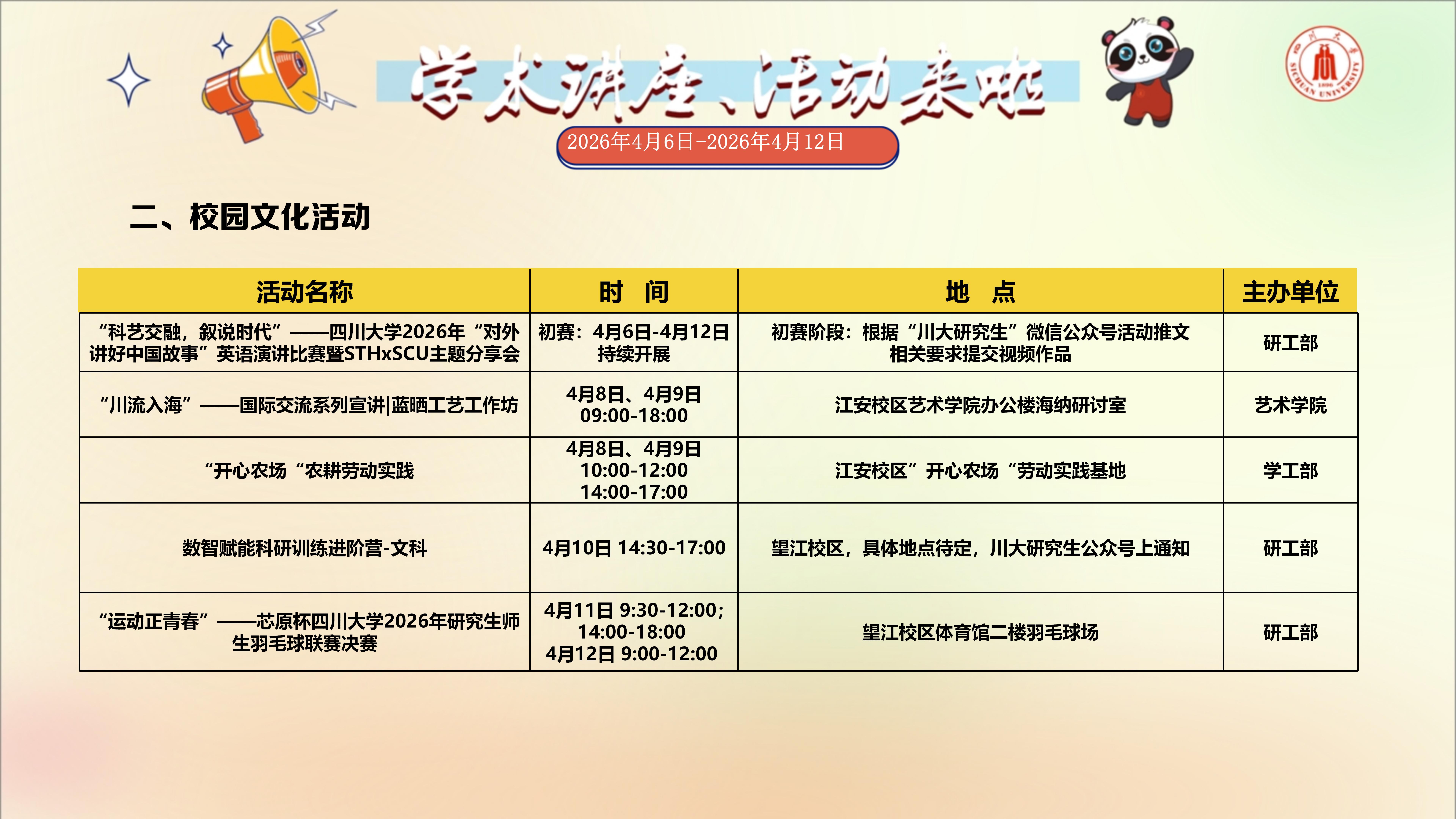 色情网址大全 与校园文化活动预告(2026年4月6日-2026年4月12日)