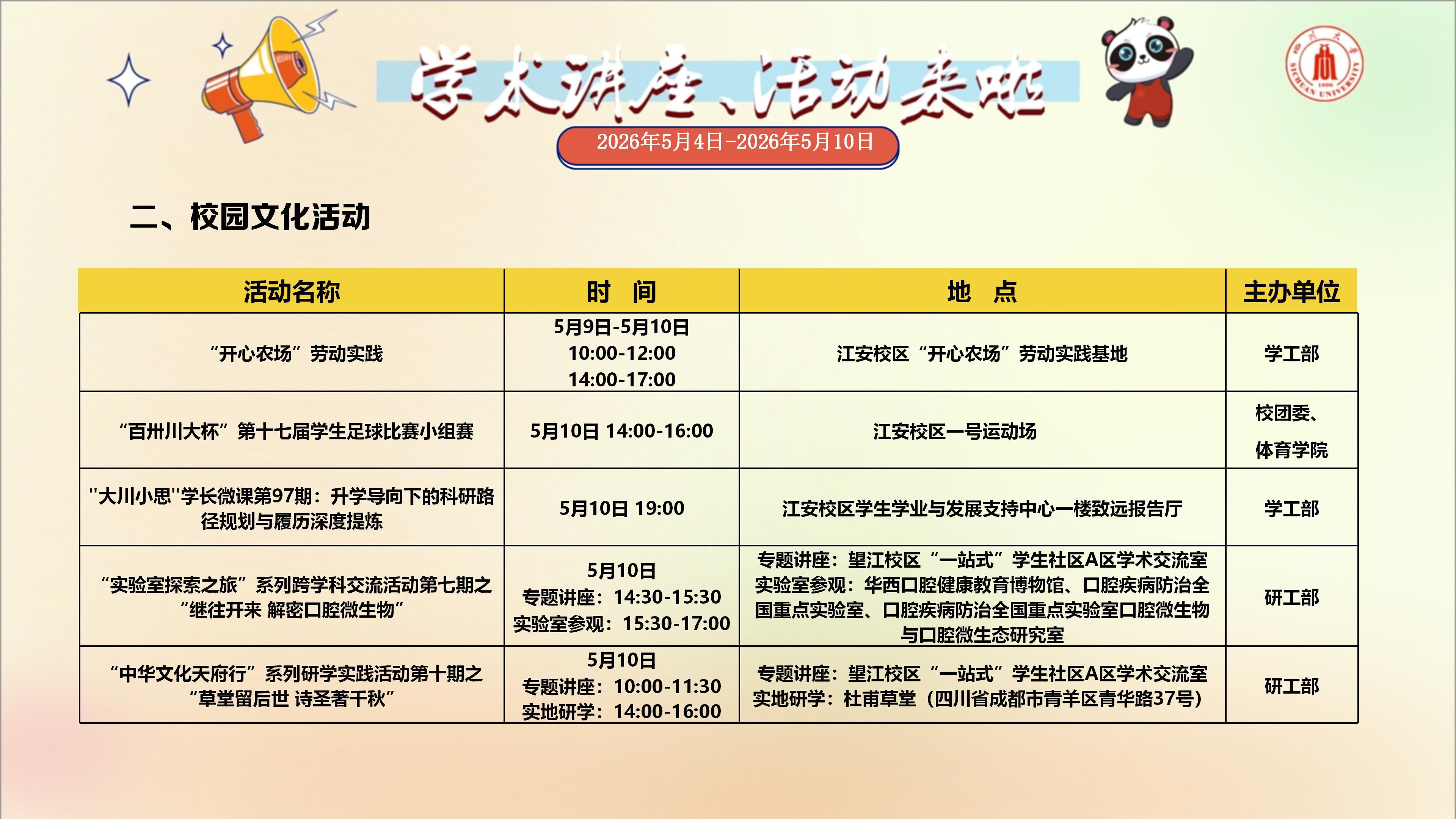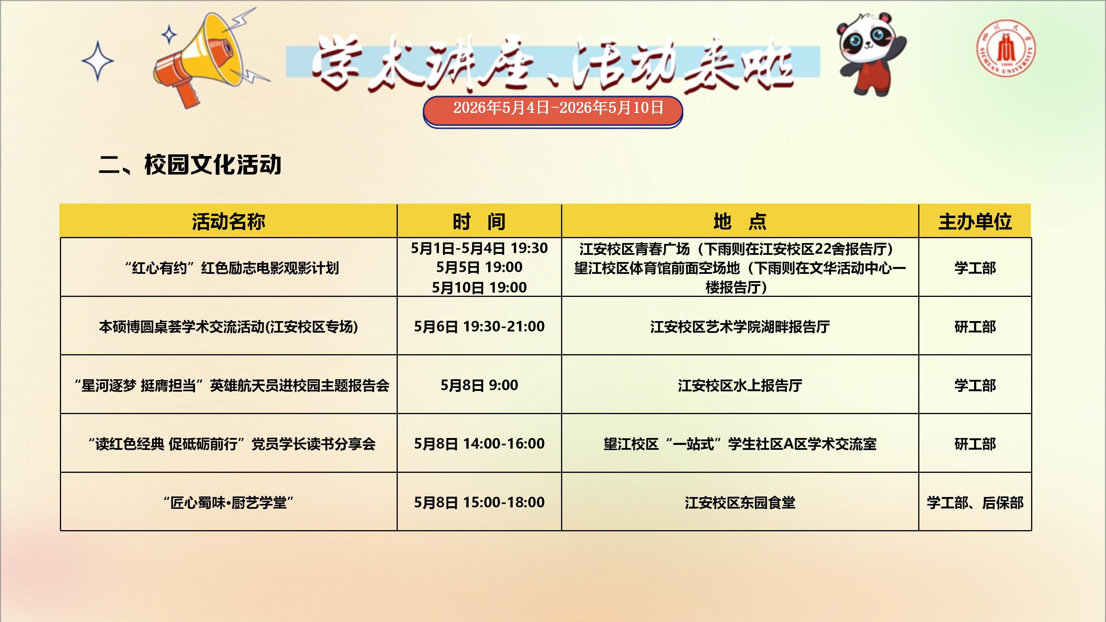 色情网址大全 与校园文化活动预告(2026年5月4日-2026年5月10日)